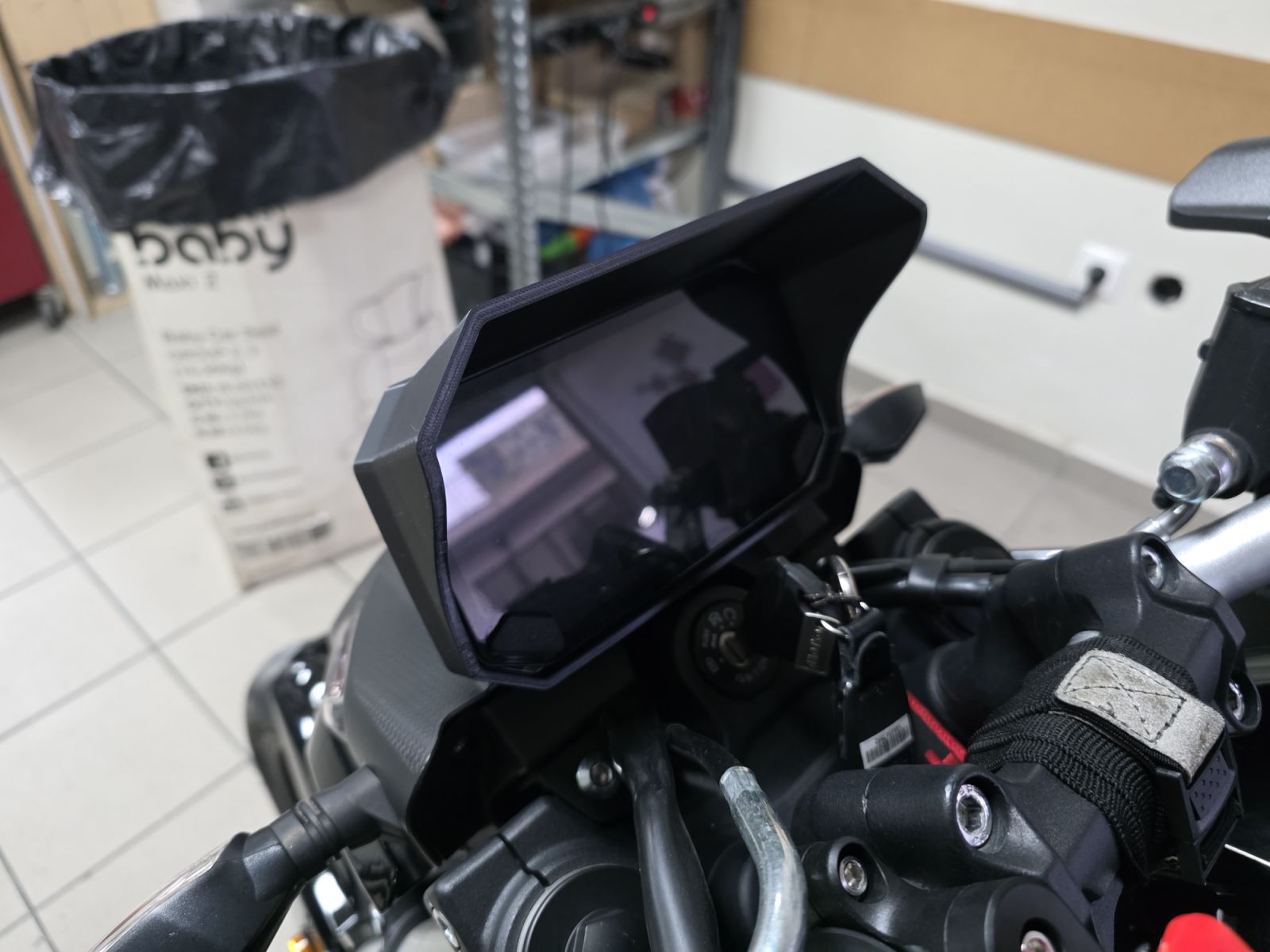 Προστατεύει από βροχή και ήλιο την οθόνη της μηχανής.